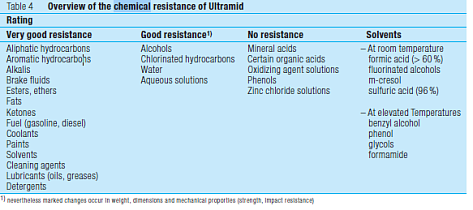 Среди достоинств материала баланс прочности и эластичности, малый вес, стойкость к нефтепродуктам, и износу, легкость окрашивания. Стоимость при серийном производстве ниже, чем у металлов. Проблема стойкости к термо-и фотохимической деструкции легко решается вводом термо-и светостабилизаторов.